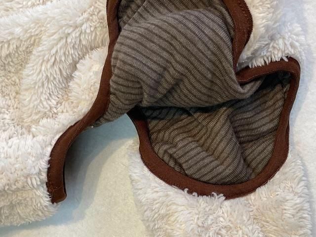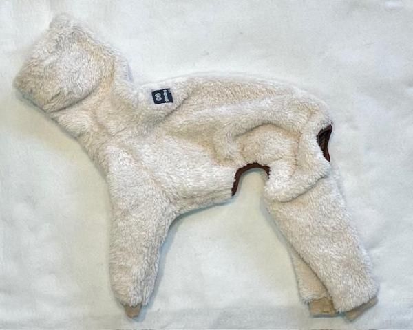 モコモコの厚手のファーフリースの、裏地付きフルスーツです